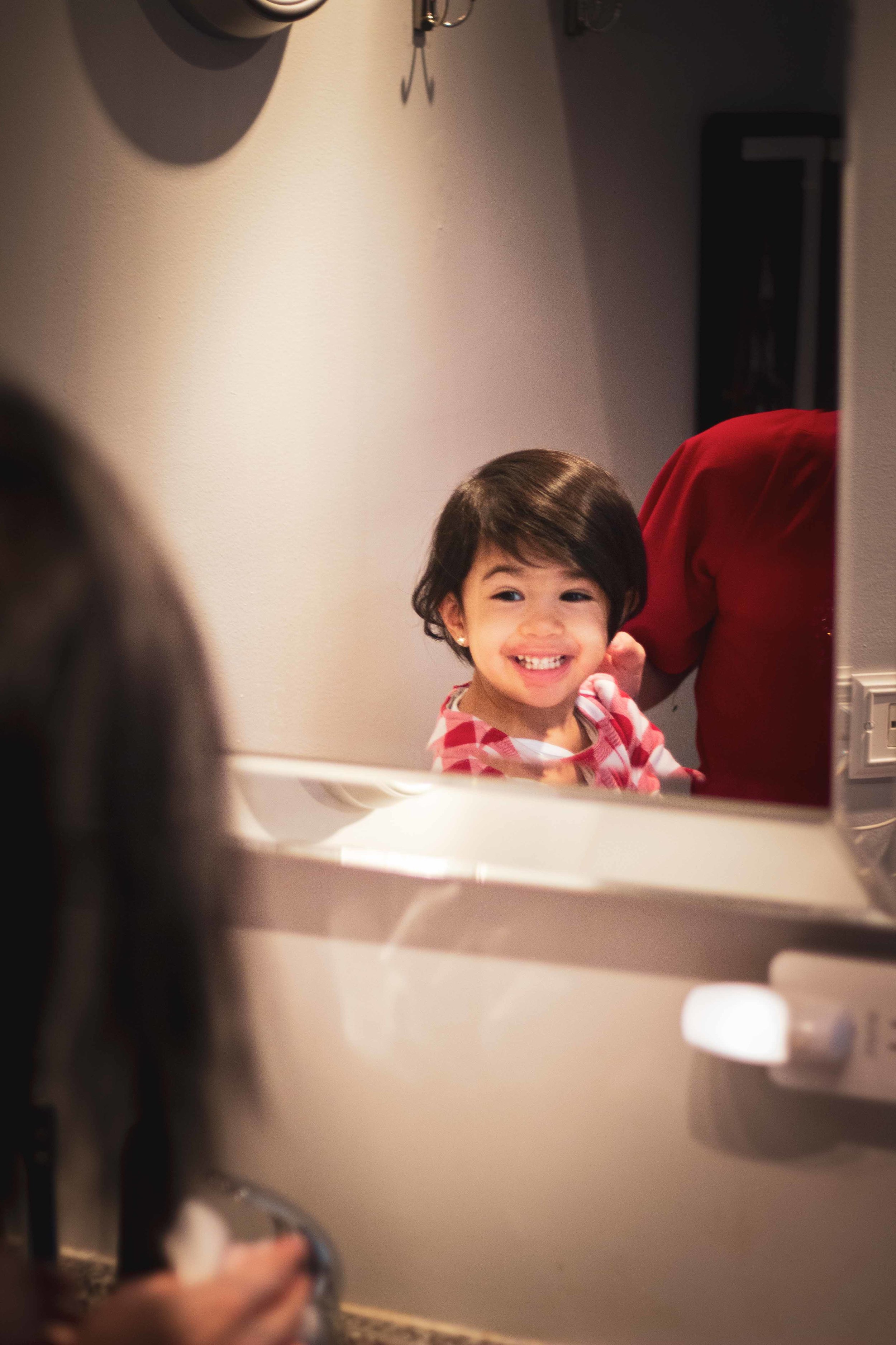 In addition to getting some adorable photos of Emi, one of my favorite moments was when Emi found Genβs long-wear lipstick and was pretty proud of how great she looked while Gen scrubbed it off :). Too bad I was about 1 second too late to catching a photo of her in the act!